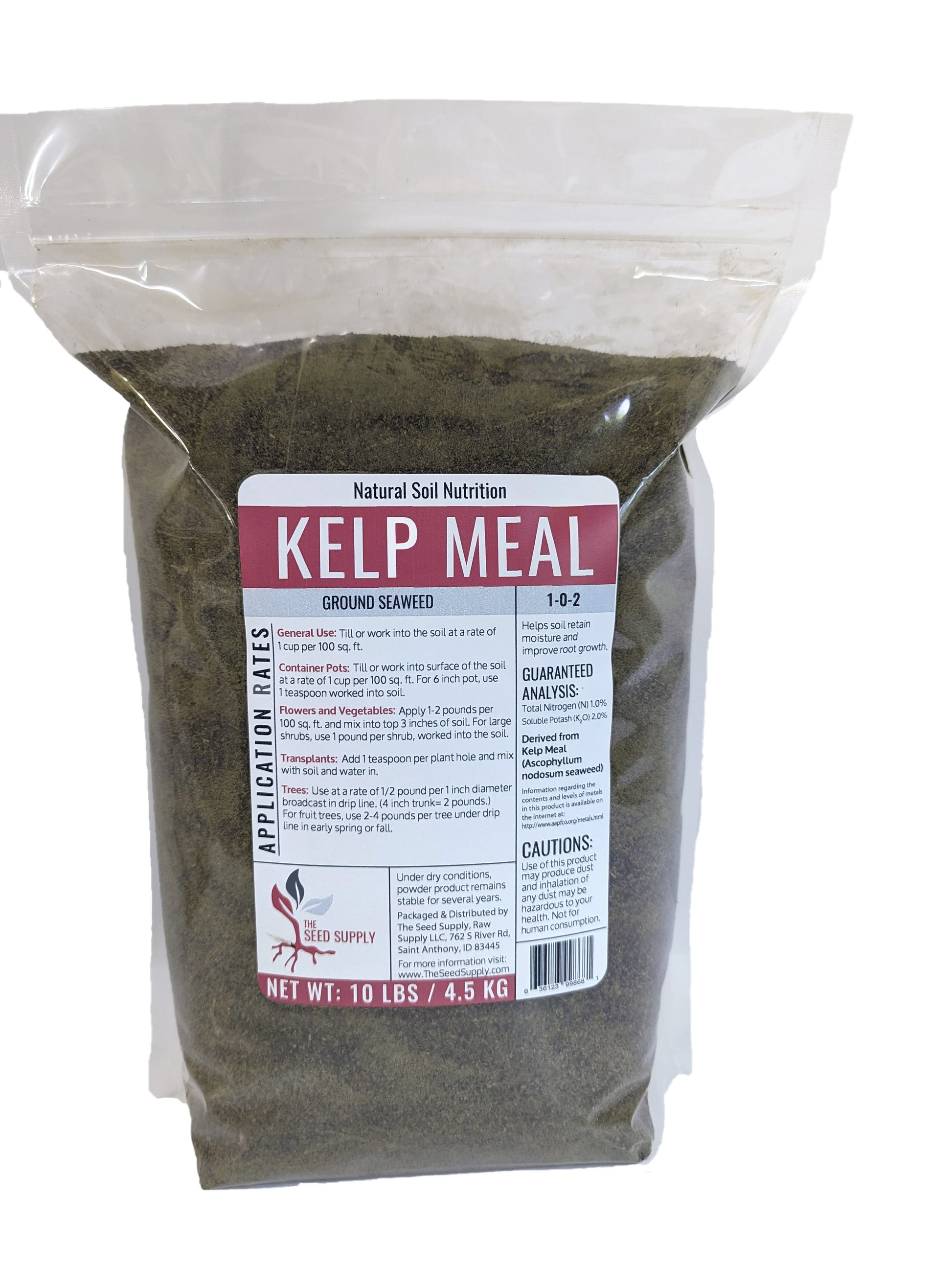 Kelp Meal is a premium natural fertilizer and soil amendment that provides valuable micronutrients, vitamins, and minerals to enhance plant health, increase crop yields, and improve soil structure. This non-pollutant, sustainable resource helps reduce plant stress from drought, enhances frost tolerance, and promotes stronger, more resilient growth. Ideal for use in gardens, flower beds, container plants, and even for livestock, Kelp Meal also supports the health of pets, providing benefits for skin and coat condition.
